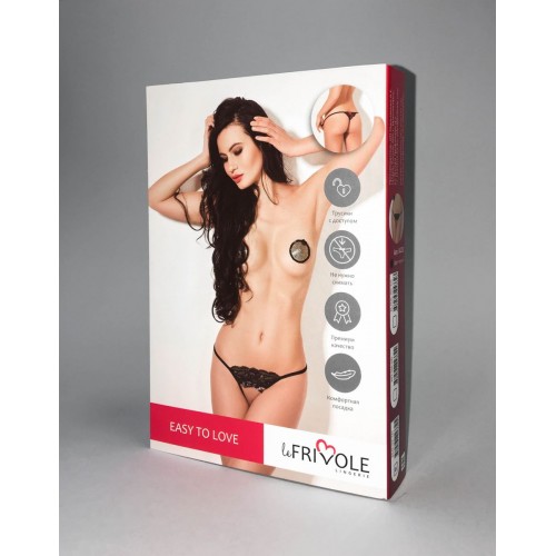 Очень открытая модель с доступом из черного кружева и эластичных лент. Хорошо смотрится на любой фигуре. Незаменима для любительниц острых ощущений, склонных к спонтанному сексу в неожиданных местах. Пикантные детали: передняя часть украшена черным атласным бантиком, задняя – таким же красным.