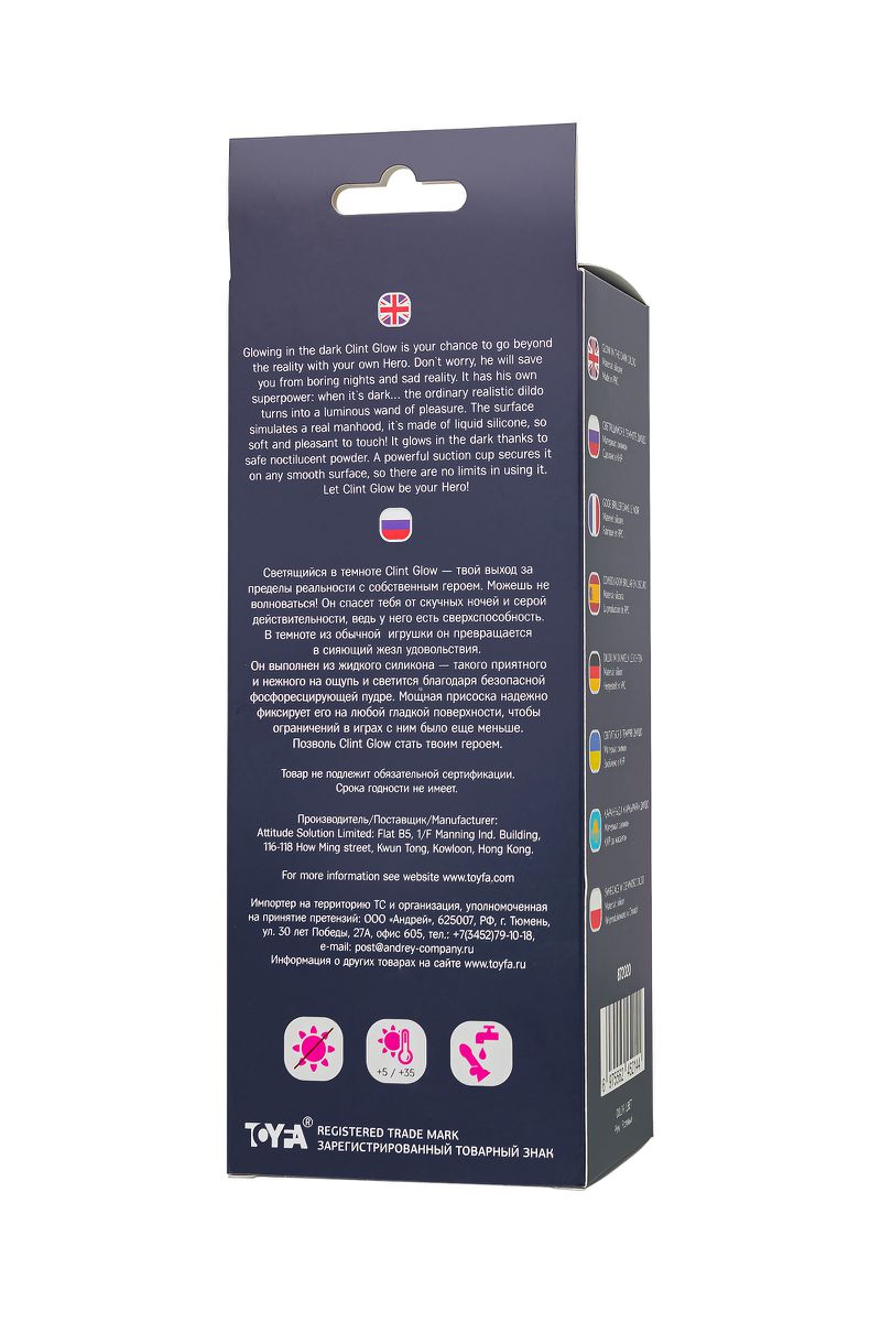 Светящийся в темноте Clint Glow — твой выход за пределы реальности с собственным героем. Можешь не волноваться! Он спасет тебя от скучных ночей и серой действительности, ведь у него есть сверхспособность. В темноте из обычной игрушки он превращается в сияющий жезл удовольствия. Он выполнен из жидкого силикона — такого приятного и нежного на ощупь и светится благодаря безопасной фосфоресцирующей пудре. Мощная присоска надежно фиксирует его на любой гладкой поверхности, чтобы ограничений в играх с ним было еще меньше. Позволь Clint Glow стать твоим героем.